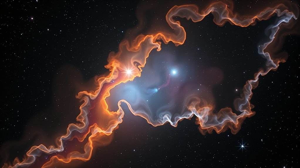 To make the nebula’s structure stand out, you’ve got to roll up your sleeves with image processing techniques. Start with contrast enhancement to bring out faint details, then use local adjustments to emphasize specific features. Playing with curve adjustments and noise reduction can also help reveal intricate filaments. Don’t be afraid to experiment—sometimes, the smallest tweak can turn a good shot into a stunning one.