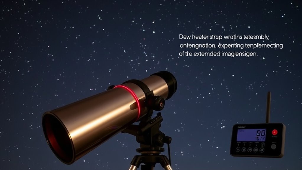 Dew heaters are essential for long imaging sessions because they keep your telescope optics clear and free of dew or frost. Without them, moisture can form on your lenses, blurring your images and forcing you to stop early. By gently warming your equipment, dew heaters help maintain sharp, high-quality captures and protect your gear from moisture-related damage. Keep going, because understanding how these systems work can make your imaging sessions even more successful.