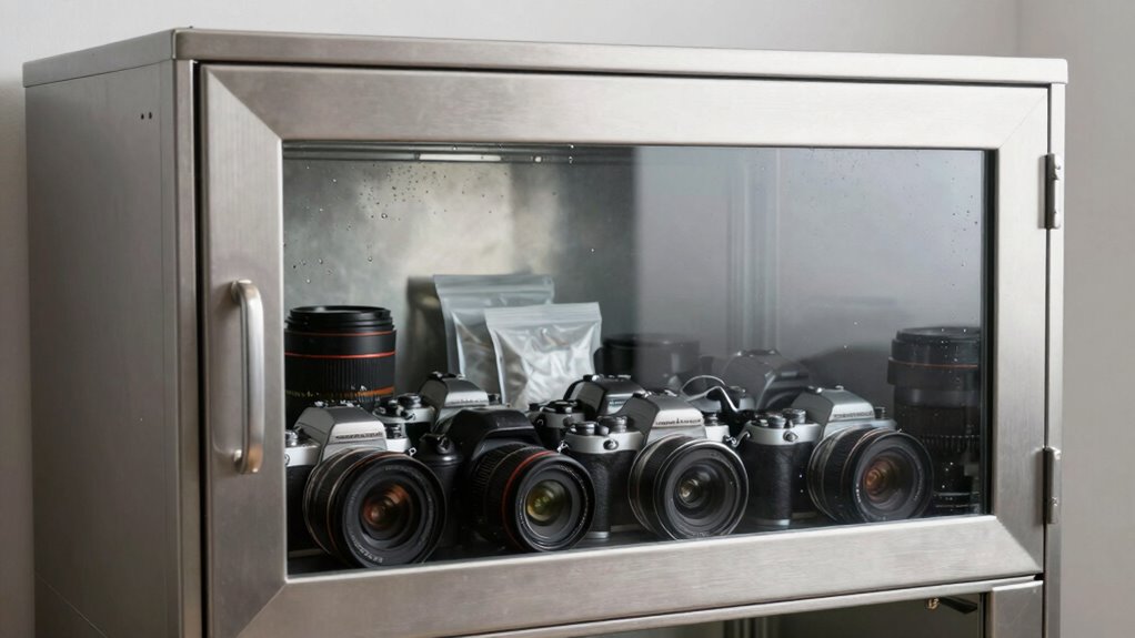 Controlling humidity levels is essential for keeping stored items in pristine condition. Proper humidity management prevents mold, corrosion, and damage to delicate optics and cameras. To achieve this, consider these key steps: