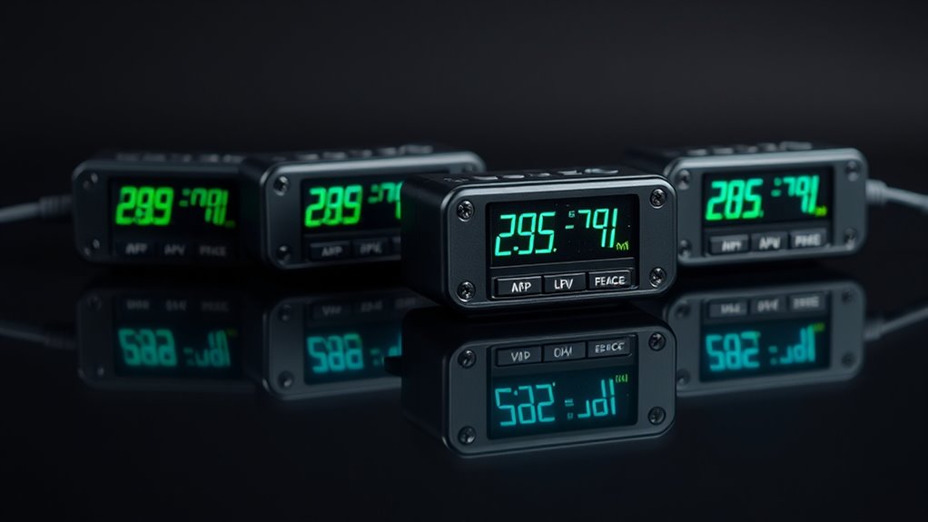 Choosing the right temperature control options is vital for effective dew prevention, especially since different environments demand varying heating levels. Many dew controllers let you adjust heating intensity, so you can set just enough warmth to prevent fogging without risking damage. Quick-start modes are helpful, reaching target temperatures within seconds, which is indispensable during sudden cold snaps. Some devices feature digital or analog controls, giving precise regulation over heat output. The ability to monitor and tweak temperature settings in real-time ensures you avoid overheating, protecting sensitive equipment. Compatibility with external sensors or thermostats adds a layer of automation, allowing the controller to adapt automatically to changing humidity and temperature conditions. These options help optimize dew prevention while maintaining safe, efficient operation.