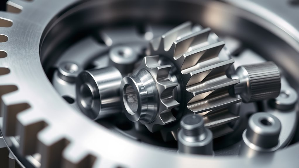 Adjustability is a key factor when selecting a counterweight for planetary gear systems, as it allows for precise tuning of balance. Counterweights with threaded holes or sliding mechanisms give me fine control over the system’s weight distribution. Being able to add or remove individual weights helps me tailor the balance to different planetary sizes and masses. Flexible adjustment options make it easy to modify the setup quickly, whether during initial setup or after system changes. Modular designs or multiple attachment points allow incremental adjustments, guaranteeing ideal balance. The adjustment range typically spans from tiny fractions of a gram to several hundred grams, depending on the system’s needs. This flexibility ensures I can achieve the perfect balance efficiently and accurately, enhancing overall system performance.