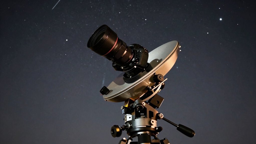 Imagine your camera as a delicate dancer, gracefully following the celestial rhythm. Mount tracking accuracy is the choreographer’s precision, ensuring each move aligns perfectly with the stars’ slow waltz. In long-exposure astrophotography, even tiny missteps cause star trails or blurry images. So, the more accurate the mount’s tracking, the sharper and more breathtaking your deep-sky images become, capturing the universe’s beauty with unwavering clarity.