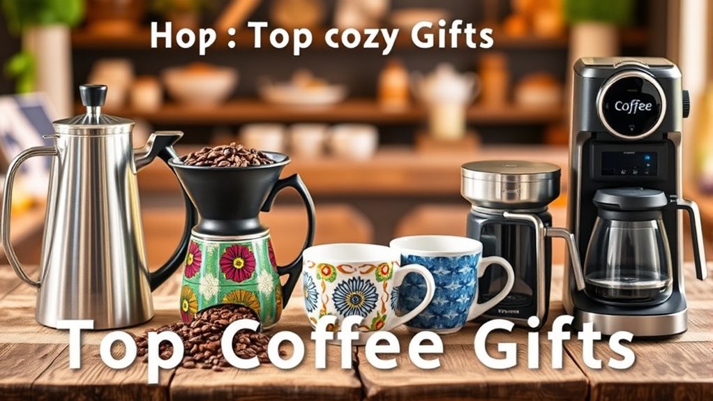 Think of finding the perfect coffee gift like planting a seed—nurture it with thoughtfulness, and it’ll bloom into pure happiness. Whether it’s a cozy journal, a stylish spoon rest, or a gourmet sampler, each gift is a gentle watering that fuels their passion. When you choose with care, you’re not just giving a thing; you’re inspiring moments of warmth and joy that grow with every sip. That’s the true magic of a perfect coffee gift.
