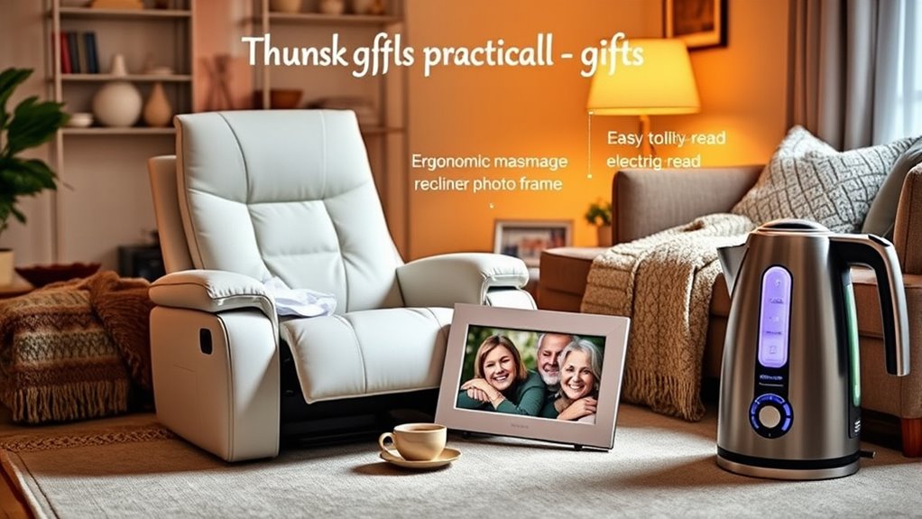 Choosing the right practical gift is like planting a seed of comfort and joy that blooms daily. When I pick something thoughtful, I’m offering a gentle hand to steady their days and a cozy corner in their routines. It’s about giving more than just a gift—it’s about creating moments of ease and smiles. So, think of your choice as a warm, guiding light that helps brighten their everyday path, making life a little sweeter.