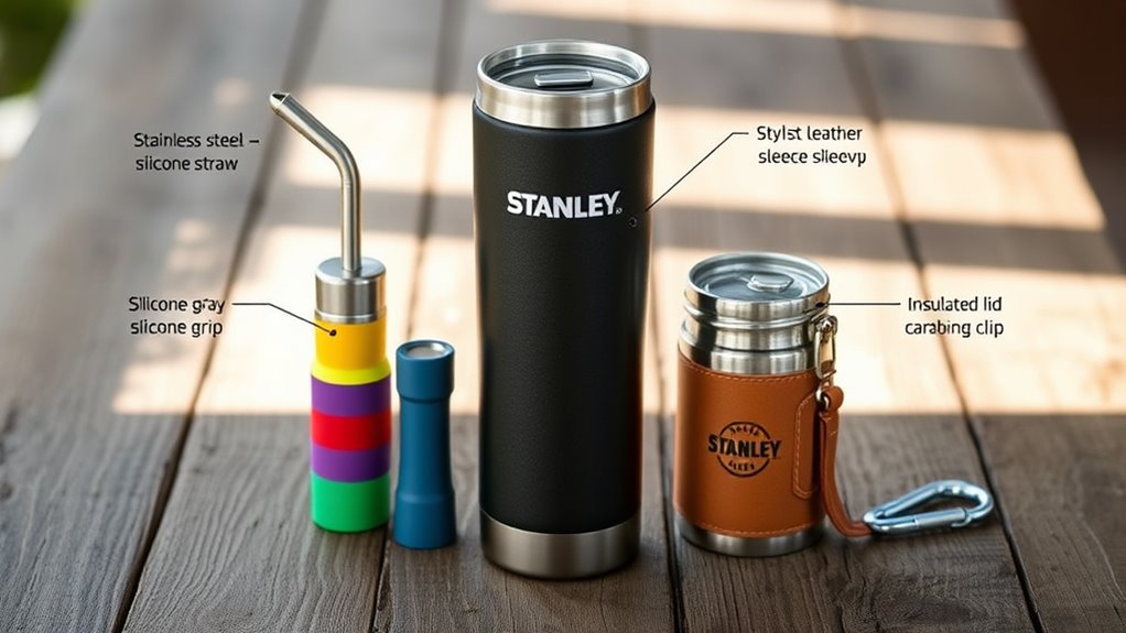 If you’re looking to elevate your hydration with your Stanley tumbler, I recommend checking out five top accessories. From festive 12-piece holiday sets to the advanced IceFlow 2.0 tumbler, these pieces add style and function. Useful features like butterfly straw caps, protective boot straps, and versatile carriers make every sip easier and more fun. Want to see which options can transform your experience? Keep going—there’s plenty more to discover.