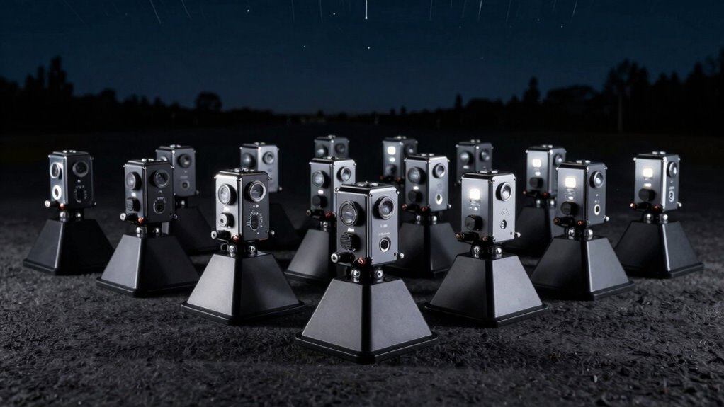 Star trackers with wedge bases improve astrophotography accuracy by offering precise alignment and stability. I find that the wedge base allows me to adjust my tracker’s angle easily, matching the Earth’s tilt for ideal tracking. This reduces star trailing and guarantees sharper images. With better alignment, I get more accurate star positions and longer exposure times, making my astrophotography sessions more successful and enjoyable.