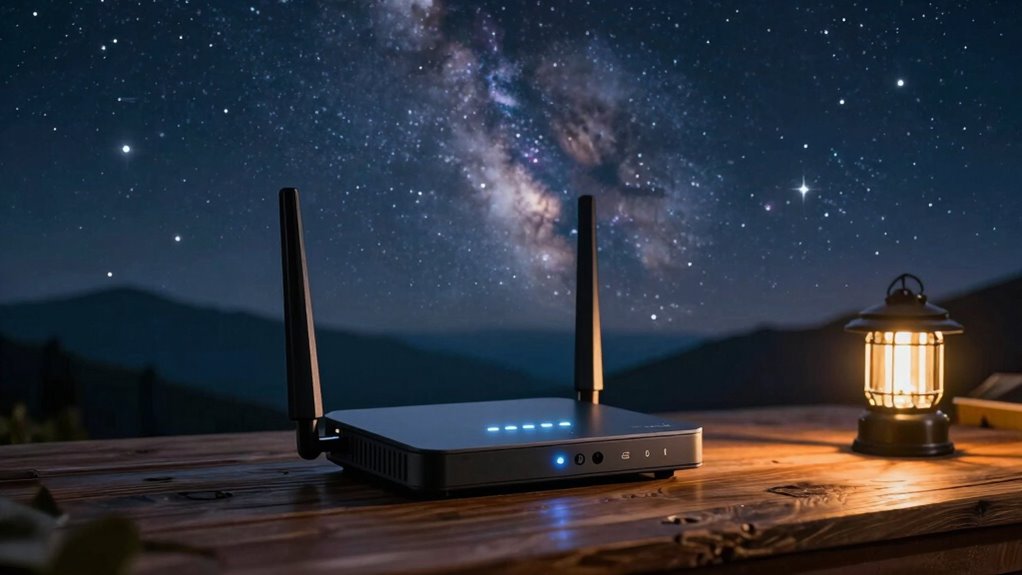 During extended star parties, the battery life of these travel routers typically ranges from 6 to 12 hours, depending on usage and model. I’ve found that lower power modes and turning off unused features can extend battery life. Carrying a portable power bank is a smart move to guarantee continuous connectivity. I always plan ahead, so I don’t lose my connection when I need it most under the night sky.